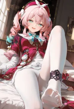 洁白又纤长的美腿,一端遮掩于裙下春光,另一端显露出足部的形状,圆润饱满的足趾放松地微微蜷缩着,中指稍长,是高贵优雅的希腊脚,足弓圆弧如弦月般优美,足掌则似粉玉凝脂般娇嫩,纤美精巧的莲足无疑是少女活泼元气的体现,于是此刻恬静地坐在你身侧的风堇小姐便显得格外乖巧可爱,属于萝莉的一切美好都在白丝依偎之下被纤悉无遗地勾勒出来,外人所能窥见的只有她足跟和脚趾处惹人遐想的粉红。