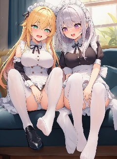 莉莉和露娜一左一右扑进沙发,把我夹在中间。两人还穿着学校的制服——白色衬衫配深蓝色格子短裙,领口系着红色蝴蝶结。过膝白丝袜包裹着纤细的小腿,在午后阳光下泛着柔和的光泽。
